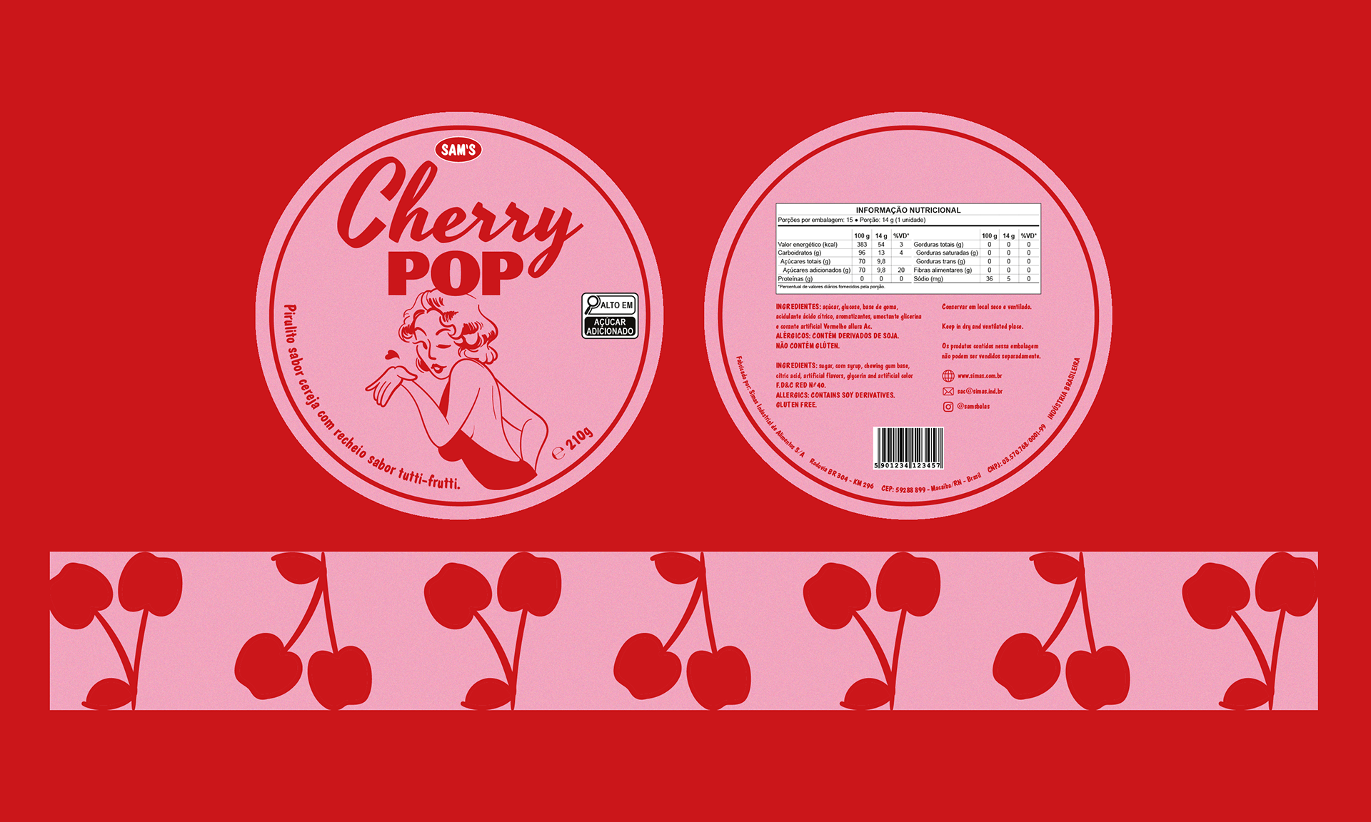 Projeto desenvolvido para a disciplina "Projeto em Design de Comunicação", com o objetivo de repensar a embalagem do clássico pirulito "Cherry Pop". Identificamos uma oportunidade de atualizar e reposicionar o produto, de modo a comunicar com mais clareza sua essência divertida com uma pitada provocativa. A partir disso, propusemos um redesign completo, envolvendo tanto sua embalagem quanto identidade visual, criando uma linguagem contemporânea e consistente que revitaliza a imagem do pirulito.